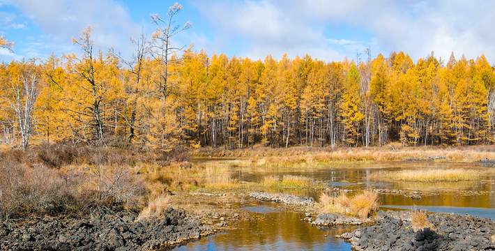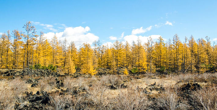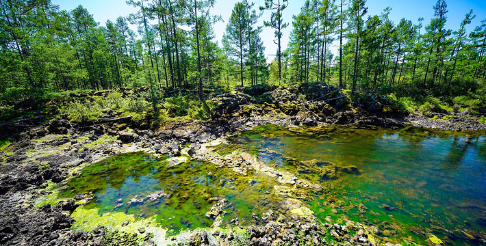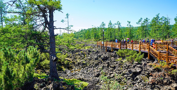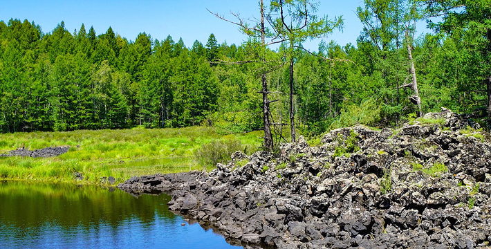 石塘林是大兴安岭奇景之一。走进石塘林,如同走进天然、完整的火山岩地质博物馆。这里分布着多次火山喷发形成的地质遗迹,石塘犹如波涛汹涌的熔岩海洋,熔岩形态各异,有翻花石、熔岩垅、熔岩绳,熔岩碟、熔岩洞,熔岩丘、喷气锥、熔岩陷谷,地下暗河等神奇景观。在寸土无积的石塘内,却生长着高大挺拔的落叶松和大片的桧柏、偃松、金星梅、银星梅等植物,与嶙峋的奇石相依,构成了一幅巧夺天工的石林画卷。