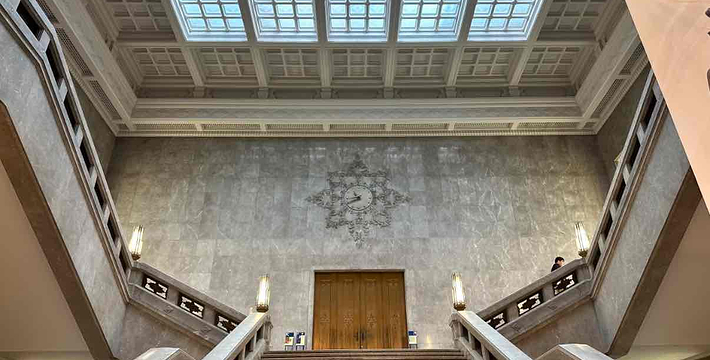 从本馆正门出来,去到东南侧的东洋馆,这里陈列着中国、朝鲜半岛、东南亚、印度、埃及等地的美术、工艺品和考古文物。其中主要展出的是古代中国文物,占6个展室,展品包括史前石器和彩陶、商周青铜器、汉代陶器和画像石、魏晋南北朝佛像、唐代金银器和三彩,以及宋、元、明、清瓷器和书画等,例如珍贵的《释迦出山图》、三彩贴花龙耳瓶、螺钿龙涛菱花口盘。你还会看到古埃及木乃伊、高棉雕刻等物品。