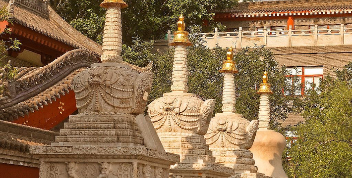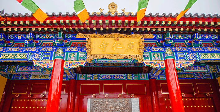 广仁寺是陕西省唯一的藏传佛教寺院,1703年由清圣祖康熙帝敕建,历史上起着凝聚、促进西北边陲多民族团结的作用。千手观音像”位于广仁寺的主殿天王殿,安坐在金刚台莲花宝座上,由俄罗斯珍贵椴木雕制。佛像高约6.6米,重达两吨。观音像全身贴金,闪闪发光,慈眉善目,胸前双手合十。该像由美籍爱国华侨齐茂椿先生出资、浙江民间艺人陈伟阳等人历时半年精雕而成。