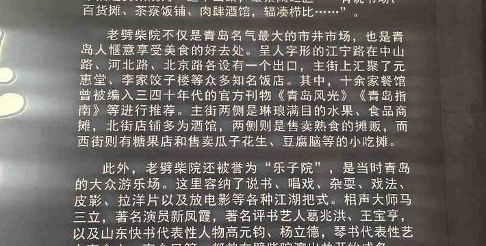 劈柴院位于青岛市南区中山路商业圈,是中山路、北京路、河北路、天津路围合的街坊。其实劈柴院有个路名叫江宁路,德国占领青岛后,于1902年修建了此路。它是“人”字形,东端连着中山路,北边连北京路,西边通河北路。“江宁”是南京的古称”。至于劈柴院这名字的来历,有人说,这里原先是个“劈柴市”,全是卖劈柴的。还有人说,这些劈柴除了 供市民烧火做饭,还供应大窑沟窑炉烧制砖瓦等等。在刘筠的诗集《青岛百吟》中,我们看到了这样一段注释:“劈柴院近中山路。院内皆劈柴架屋,故名。贵人不屑一顾,然房租轻而价廉,穷措大得往来其中焉。”这就是说,劈柴院是因为里面盖了许多临时的商用“劈柴屋”而得名的。这些“劈柴屋”,为一些老青岛人所熟知,大多是一些随意搭建的破板房,低矮潮湿。 从上个世纪20年代中期,青岛建为城市后,在这里修了一条江宁路,建了几个大院,江宁路逐渐成了一条商业步行街,街上几个大院多为商店、饭铺,劈柴院从一个院子的名称成了这一商业街的名称。