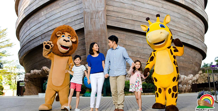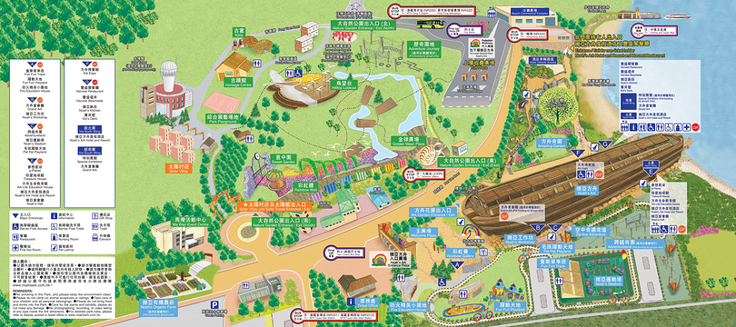 以原比例建造的挪亚方舟主题公园,坐落于宁静怡人的马湾岛上,拥览青马大桥及蓝巴勒海峡的壮丽景色,远离俗世繁嚣。集合玩乐与游学于一体,并透过一系列多元化设施及活动,如方舟花园、多媒体博览馆、珍爱地球馆,带领全球旅客穿梭非凡之旅,让游客越玩越聪明,带来崭新的旅游体验。方舟花园内展示的67对以等比例打造,栩栩如生的动物雕塑为你的非凡之旅启航。动物雕塑更包括稀有及濒危品种,让你可一边欣赏青马大桥的醉人景致,一边从观赏中学习它们的不同特征和濒危指数,与稀有动物近距离会面之余亦可提高大家对动物保育的意识「太阳馆」面积达1500平方米,楼高30米、直径三百五十毫米的真空太阳望远镜,让你实时观察神奇的太阳表面活动。科学展览及3D影片更可带你进入浩瀚宇宙,欣赏波澜壮阔的天体奇观,进一步探索太阳及银河系的奥秘。集互动游戏及多元化展览于一身的「方舟博览馆」,于幻彩生命廊中,你可亲身探索各种珍贵可爱的小动物,并于四维立体影院中亲历大洪水的威力,感受超感官震撼;方舟多媒体博览馆内搜罗数以百艘来自全球的方舟珍藏模型,配备有趣互动游戏,展开一次震撼心灵的探索之旅!