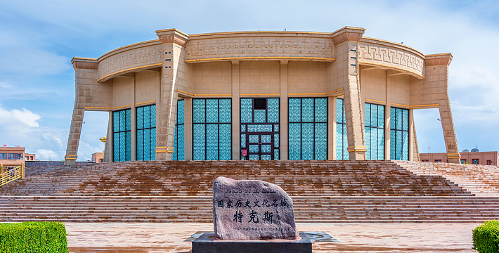 博物馆内还展出了在特克斯境内出土的各种文物。主要有大约在3000万年—300万年前的海象和海贝化石、阿克塔斯岩画和青铜时代的铜剑,铜刀和青铜时代的铜扣件、公元前二千年-公元前一千年的铜凿、铜铲、铜镰刀、缸形陶罐、铜锥、石杵、石臼、铜马镫、铜马衔、铜簪、骨镞;唐代石刻藏文、草原石人、立羊柄铜镜、彩陶罐、古代墓葬封堆结构、石堆墓、铜棒、铜碗、汉代铜扣、铜耳环、铜戒指、石化妆棒、石化妆盒、铜铃、铜钵等。