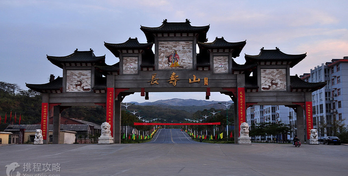 长寿山景区,总面积5.5平方公里,满目青山叠翠,如诗如画。深秋季节,漫山红叶,层林尽染,如霞似锦。长寿山景区不仅生态环境优美而且旅游资源丰富,望舅台、笔架山、桃树沟、杏树岭、福龙寿龟、千年古橿、三星宫,是远离喧嚣、回归自然、放飞心情。长寿山景区位于竹林镇东南方向的崇山峻岭之间,是以生态旅游和休闲观光为特色的窗口景区。长寿山,原名叫“龙龟山”,又叫“三树岭”。因这里有久居仙山的自然景观石龙、石龟,还有树龄超过千年、峥嵘苍劲的三棵老橿树而得名。 长寿山景区生态林面积5平方公里,整个景区一片郁郁葱葱,满目青翠。长寿山景区的突出特色是春天山花烂漫,桃花、杏花、迎春花等竞相开放。夏天绿树成荫,凉爽如秋。