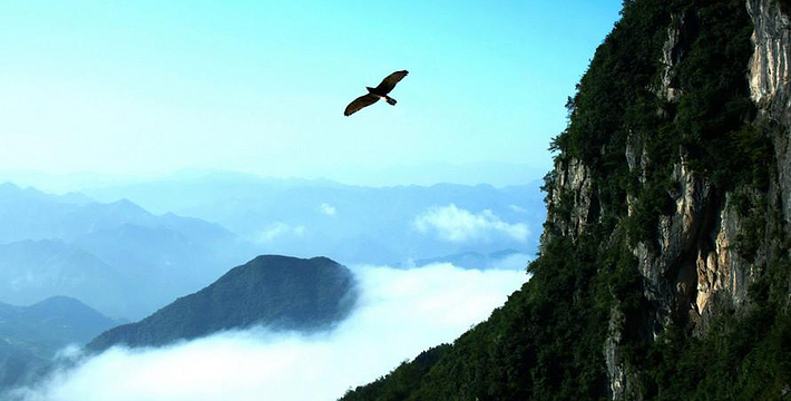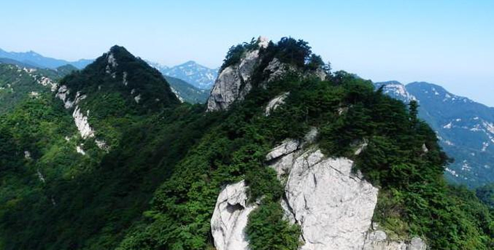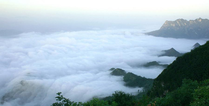 娘娘山之雄在于登临1556.12米的主峰峰颠,极目东眺,灵宝市高楼林立,人车如流;南望平湖,气象万千,窄口水库宛如一块碧玉镶嵌于群山之间;西伫雪壁,花岗岩森严壁垒,形成蔚为半观的飞流石瀑;北瞰果海,弘农古塬郁郁葱葱,更有春色黄花,漫山遍野,加之6万亩的松柏林,青黄相肌,层次分明,令人有心旷神怡、阅尽沧桑、陶然忘我的全新感受。