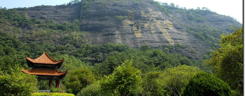 随着佛教传入中国,都峤山又成为佛教的文化圣地,山壁上留有著名书法家赵朴初书写的“佛”字。