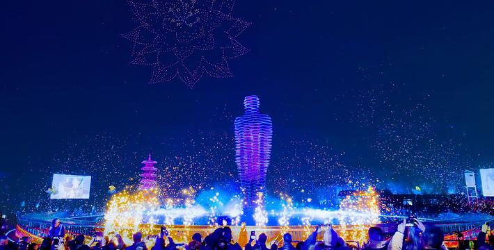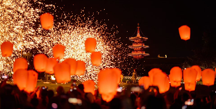 ②拈花塔亮塔仪式-地点:拈花广场,时间:18:10、18:30、19:00、19:30、20:00、20:30。