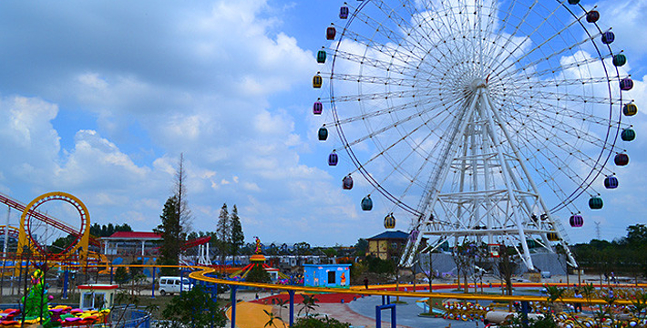 “扬州乐园”由香港Trimax Group卓峰集团与澳洲Lloyd Corporation 崃德企业联合打造,重庆滢宝会展主办,投资逾2000万,选址重庆市渝中区上清寺鑫隆达会展中心,展出面积约4000平米。美轮美奂的“亲子体验广场”,坐落于乐园的北端。以整齐对称的绿篱形构成了儿童独享的梦幻花园。这里有七彩花海表演广场、蓝蝶之谜5D电影院和各种耳熟能详的亲子游乐设施:丛林飞鼠、逍遥水母、小蜜蜂、小火车、双人飞天、摩天轮、过山车、嘉年华、儿童体能中心等等。七彩花海表演广场会有多姿多彩的表演类及其他公益小项目,给您带来不一样的视听盛宴。让父母和孩子在运动和欢乐中体会到彼此的心,感受亲子爱的力量。主题乐园外部门头高16米,横向15米,内连25米长的灯光隧道阶梯,绚烂潮涌,直达内部。前厅3米高巨型欧式巧克力蛋糕顶部,通过全息投影技术,演绎“扬州乐园”三个亲爱可人的玛雅风格的卡通形象;玛雅时空隧道流星坠落,叠叠不休,星星点点,映面如花,光影幻动,极光流淌;巧克力艺术区利用数以吨计的巧克力,打造了四十多个欧洲风格的人物和建筑雕塑;浪漫的爱情通道,利用新颖创意的光效和荧光图案,打造浪漫甜蜜的空间;长12米仿真超级玛丽游戏场景,唤醒心中稚趣童心跟随欢乐的背景音乐翩翩起舞。高达60米的摩天轮,静静地感受太平河波光粼粼的景色,亦或是黑夜里的繁星点点,充分体验自在岛天水一色的自然风貌,感受蝶恋花主题乐园的浪漫、自然、精致和优雅。