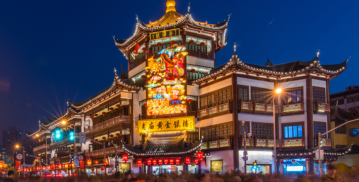 城隍庙旅游区位于市中心黄浦区东部的老城区,其北距外滩不到1公里,这里是初游上海的游客必去之处,在这里可以全面地领略到上海的历史文化和民俗风情,并可品尝到地道的上海小吃和本帮菜,而每到夜晚,仿古建筑群上缤纷的景观灯也使这里成为一道夜色风景线。城隍庙旅游区其实就是大多数人俗称的“城隍庙”,它泛指以著名景点“豫园”为中心的集景点观光、购物、餐饮于一体的大片区域,它们象征着上海的地方文化和信仰,此外还有九曲桥和湖心亭等开放性的小景点。城隍庙旅游区是个常年人头攒动的地方,因为这里还是个著名的商业区。这里坐落着数栋小商品批发商城和综合性商场,以及非常多的金店、珠宝店,更有众多餐饮老字号,在这里还可以购买到各种上海土特产。