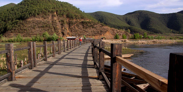 走婚桥位于泸沽湖东南水域的草海区域。桥下由于长年泥沙淤积,导致水深变浅,长有茂密的芦苇,远远望去,像一片草的海洋,故当地人称其为“草海”。走婚桥是摩梭男女约会的地方, 泸沽湖畔的摩梭人奉行“男不娶,女不嫁”的“走婚”习俗。