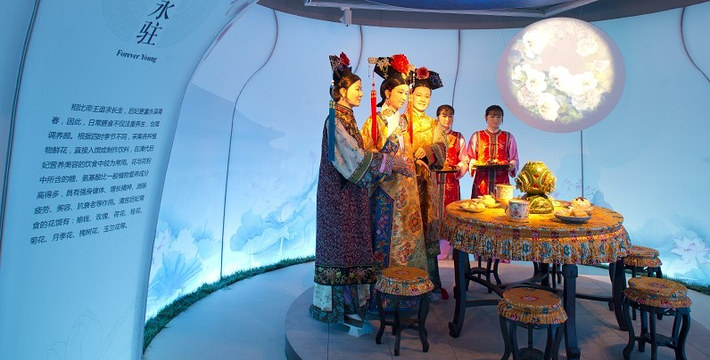 中国皇家菜博物馆坐落于北京市海淀区四季青桥附近,运用“博物馆在饭店中,饭店在博物馆中”的理念建造而成。在这里998元就能吃到10人一桌的满汉全席,并且能欣赏流光溢彩的古代宫廷夜宴场面为背景的情景剧演艺,消费者可在“以乐侑食”环境中享受一场高品质的“文化大餐”。2012年,中国首家皇家菜博物馆“御膳制作技艺”已正式列入北京海淀区非物质文化遗产名录,目前正在申报北京市级非遗项目。中国皇家菜博物馆的楼面主要分皇家菜历史文化展示区、皇家菜品尝体验区、活态观光区,呈现一馆三区、三位一体的格局。其中活态观光区即为别具创新的开放透明、低碳节能、绿色环保的现代化中央厨房。整个厨房采用玻璃幕幕墙,每个炉灶安装有摄像头,厨房内菜品加工制作全程可见,观光者与就餐者可通过视频实时观看菜品制作。另外博物馆还建有信息中心、全域布设了集传媒、点菜、监控于一体的信息系统,整个博物馆从内容、设施、手段、风格和服务等全方位融合传统和现代元素,具备能看、能吃、能学、能玩四大*能,体现健康餐饮、文明餐饮、科技餐饮特征,把过去纯粹吃喝的地方变为传播文化、培育新风、崇尚文明的场所。