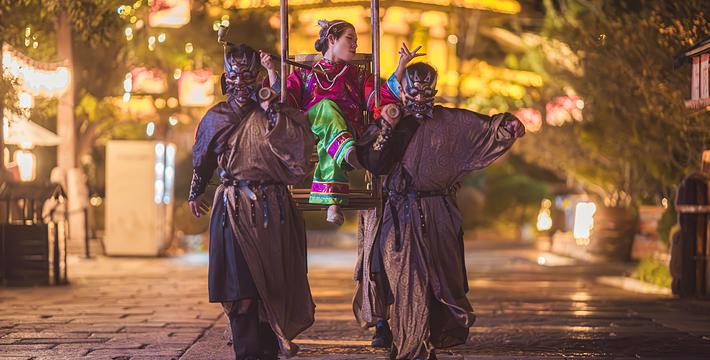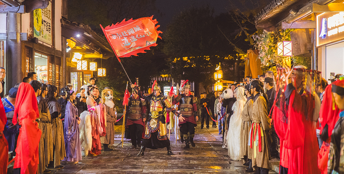 每天近30场流传千年的民俗演艺带你跨越时光,三兄妹天师台街头卖艺,民间艺人古戏台上演杂耍,武养馆内上演原创爆笑喜剧《嘻哈道》,为你讲述街舞少年拜师学艺,与师兄弟们一起守护宝藏,终学有所成、开悟成道的故事。