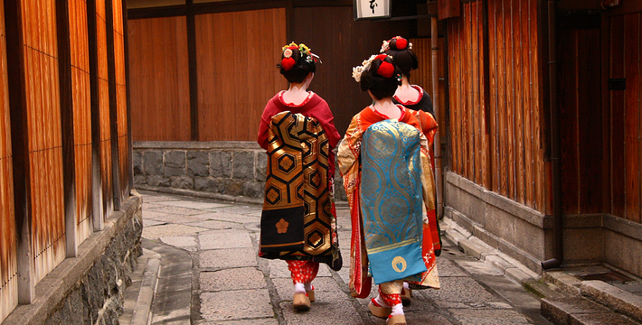 祇园位于八坂神社前、鸭川到东大路通之间的四条通沿街。白天你可以在茶室、餐厅里消遣或者逛逛土特产商店,到了傍晚灯笼闪烁时,还经常会碰到行色匆匆的艺伎与你擦肩而过。古朴的建筑这里的街道和建筑大多维持着旧时的样貌,是感受京都古韵的好地方。窄而深的木制町屋结构很有特色,从正面看起来只有5、6米宽的房子,很可能深达20多米。花见小路与四条通相交、一直延伸到建仁寺的花见小路是祇园人气颇高的街道,你会看到一间间门面精巧、各具特色的茶屋、料理屋,有不少还是专做怀石料理的高级餐馆。透过木格子窗与入口布帘的细缝,隐约可见屋内客人谈笑的身影。白川运河北边的白川运河是祇园另一处景色优美的地方,因为离四条通有一点距离,相比花见小路也要恬静一些。运河的两旁种满了柳树,散起步来氛围很不错。沿路散布着多间高级的茶屋、餐馆,有些还能俯瞰运河景观。邂逅艺伎很多游客到访祇园都是为了一睹艺伎的风采。如果你在日落时分来到祇园,可能会偶遇到盛装打扮、匆忙赶往茶屋的艺伎。她们并不直接联系客人,而是通过提供会面场所的私人茶屋来表演日本传统舞蹈。欣赏艺伎表演在高级茶屋中用餐并欣赏艺伎表演可谓价格不菲,不过祇园也有一个能让你更容易体验艺伎文化的去处——花见小路南端附近的祇园角。这是表演京都传统艺能的剧场,内容包括京舞、花道、茶道、琴、雅乐、狂言、文乐等,可以让你在一场演出内感受到京都丰富的传统文化。每天18:00、19:00各有一场演出,入场费3150日元。体验和服在祇园也可以找到变装体验的店铺,戴上发套和头饰、穿上古典纹样的生绢和服及腰带,让你“变身”成一名漂亮的艺伎,在古色古香的街道上一边观光一边拍下写真,将会是祇园之旅的美好回忆。位于祇园下河原町499番地的“彩”(ぎをん彩)是颇具人气的一家变装体验店,体验费用约12340日元起。热闹的祇园祭每年7月祇园都会举办祇园祭。整个祇园祭长达一个月,而在7月17日和24日都会进行大型巡游,届时人们在装饰豪华的彩车上用笛子、锣鼓等演奏祇园音乐,热闹异常。此外,祇园的街道上还有不少土特产商店,可以买到发簪、香、和服及日式点心等商品。
