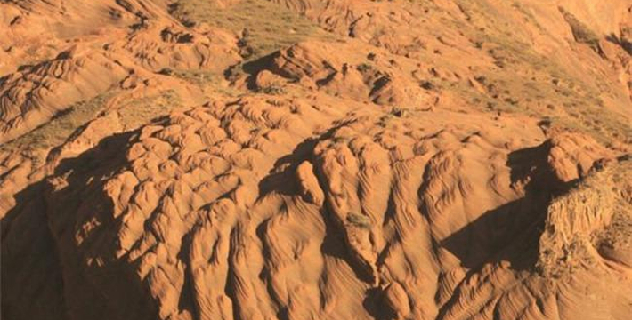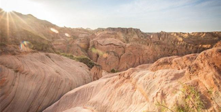 靖边龙州丹霞地貌(又称靖边红沙岩峡谷,靖边波浪谷),位于靖边县东南22公里处龙洲乡的闫家寨子,俗称闫寨子。波浪谷是一种红砂岩地貌,因岩砂上的纹路像波浪,被叫做"The Wave",即波浪。上世纪80年代,人们在美国亚利桑那州和犹他州交界处发现了波浪谷,神奇的外观和极高的科研价值使其成为了世界八大岩石奇观之一。而靖边的波浪谷也有着与美国波浪谷媲美的红砂岩峡谷。中国靖边波浪谷和美国波浪谷的差距并不大,都是红砂岩地貌,靖边波浪谷更加年轻,只有6000万年,很多砂土还没来得及凝固为岩石,它的名字叫陕西靖边龙洲峡谷
