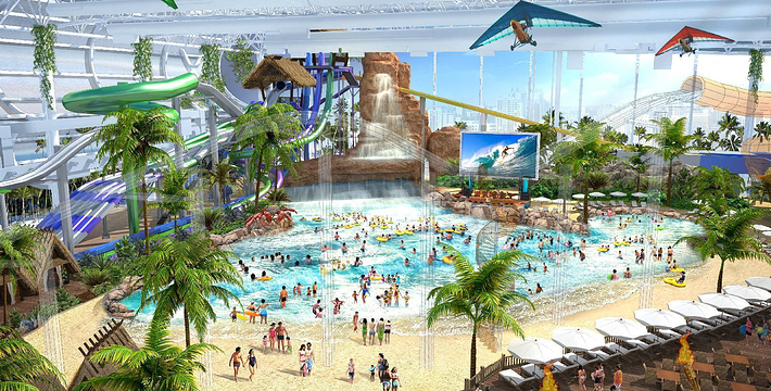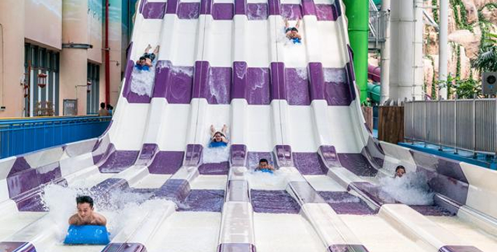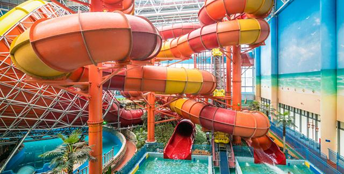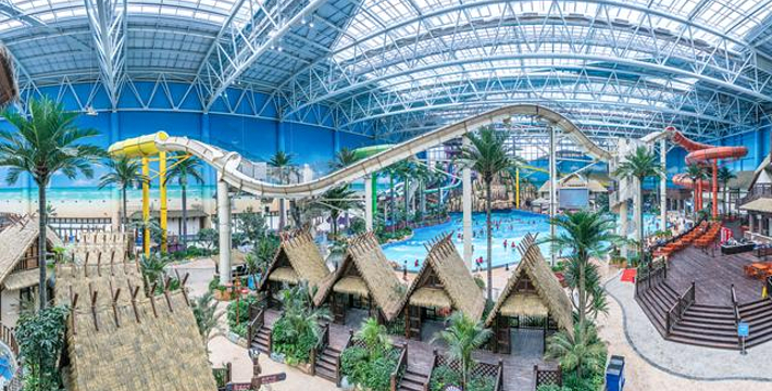 合肥融创水世界位于合肥融创文旅城融创茂内,建筑面积3.2万平米。园区以夏威夷风情为主题设计,分为火山区、天堂岛区、冲浪区三大主题区域,包含13个大型水上游乐设备,世界首创悬空双层漂流河让人置身其中,既有高速滑梯的刺激惊险、又有随波漂流的惬意悠然,还有亲水广场为您和孩子提供亲子戏水的享乐空间。在融创水世界,即使不会游泳,也能享受到四季皆宜、无比欢乐的嬉水体验。