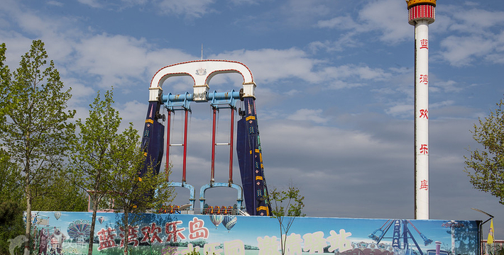 七色彩虹栈桥、十二生肖园、动力小火车将蓝湾欢乐广场、蓝湾水世界、蓝湾金沙滩、蓝湾游乐园等四大板块有机串联起来,世纪飞碟、旋转木马、迷你高尔夫、热气球飞行体验、玛雅文化水寨、彩虹滑梯、造浪池、水上冲关、水上自行车等30多个娱乐项目错落有致、星罗棋布的分布于园区各处。