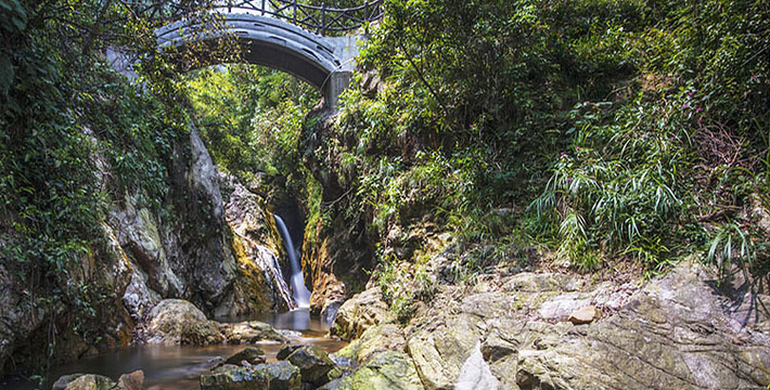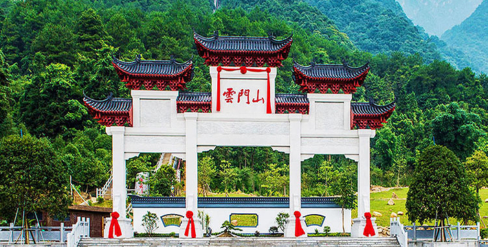 广东省乳源县云门山位于韶关市乳源瑶族自治县城北6公里,离韶关市区有50公里。云门山海拔1215米,高峰直入云天,云雾常罩峰顶。旁有“脉接云门山”的秀顶峰,古称乳源八景之一——秀顶奇云。乳源县的云门山是我国佛教禅宗五大支派之一云门宗的发祥地。山上有著名的云门寺(也称云门山大觉禅寺),桂花潭、钟鼓岩、虚云纪念堂等胜景,是休闲、参禅、旅游的绝妙圣地。