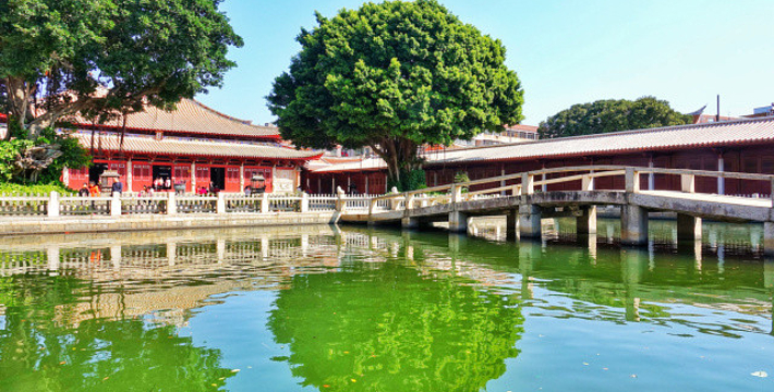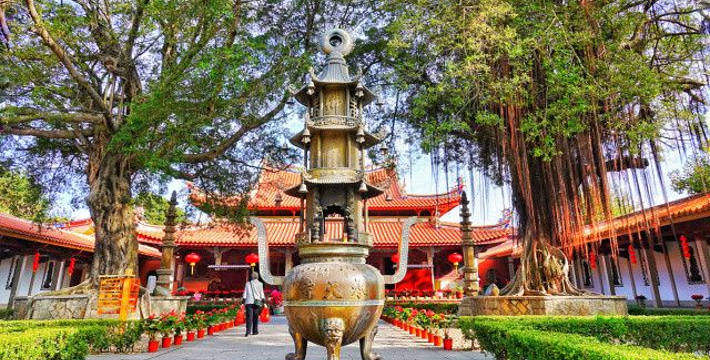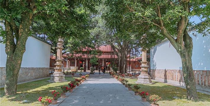 这里也曾经是弘一法师讲经弘法的地方,山门壁柱有弘一法师题联:“有无量自在,入不二法门。”寺内也可以觅见“弘一法师化身处”。但更值得去的是化身处后的小山头,静坐阅读,让人流连忘返。你也可以坐在大榕树下发呆,听着细微的诵经声,闻着渺渺的香火味,让浮躁的心沉淀。无疑,承天寺是个静心小憩的好去处。