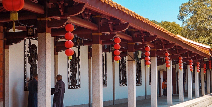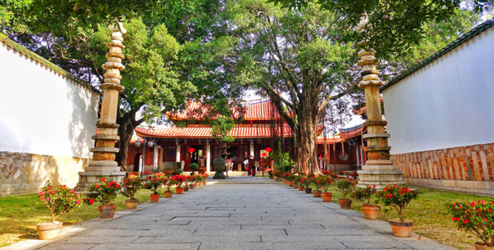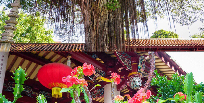 寺中植有榕树、柳树、龙眼树、白内叶树等二百多棵植物,掩映于各座殿宇楼阁之间,浓荫遍地。漫步在这清净的环境中,做一次闲人,感受悠闲自在。寺庙中还有些鸽子,并不怕人。