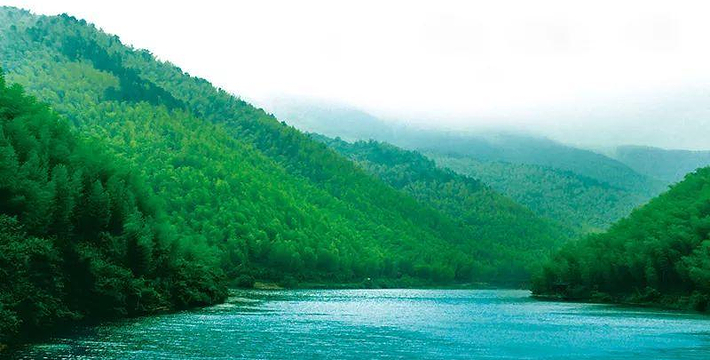 湘源湖位于三分石下,海拔1000米,湖面狭长,水质常年清澈见底。