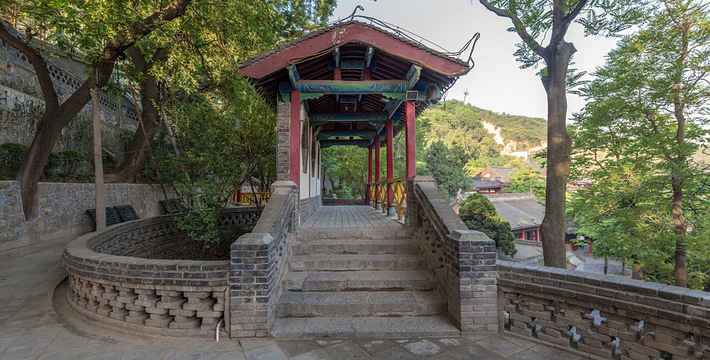 五间厅在华清池园内众多仿古建筑物中,有一座砖木结构的厅房,南依骊山,北至荷花池,庭院平坦,树木葱郁,因由五个单间厅房相连名五间厅。 五间厅是古环园中的主要建筑物,合抱粗的赤色大柱高擎于厅的前廊檐,气宇轩昂。与周围的三间厅、望河亭、飞虹桥、飞霞阁相映成趣。