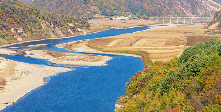 在辽宁丹东界内,有一个小山村——绿江村。它与朝鲜隔江相望,美丽的鸭绿江,蜿蜒回转,从绿江村流过。那里有奇妙的水没地现象。枯水季节,当地人在江中露出的滩地上种植庄稼:小麦、玉米、土豆。丰水季节,水位上涨,滩地的庄稼,依地势高低,部分淹没入水,成为江中的一个个绿岛。而且,随着水位的变化,绿岛的形状也千变万化。每年的6月,油菜花争相盛开,美不胜收。