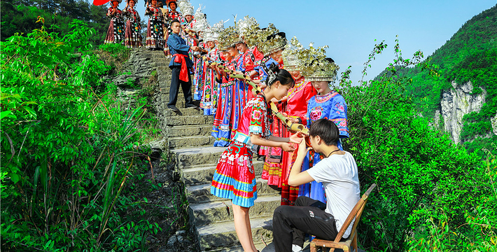 湘西矮寨是一个具有浓厚的苗族风情的村寨。苗族人民一年一度的富有民族特色的“百狮会”、“四月八”和“赶秋节”等较大的传统节日都在此举行。每逢场日,边区山寨苗胞欢欣汇集,相互交流花带、蜡染、花边、剪纸、丝线、竹器、药材及各种农副土特产品。震撼世界的湘西矮寨奇观,包括奇桥、奇路、奇谷、奇台、奇瀑、奇俗,由峒河、矮寨、德夯、小龙洞四个区域组成,总面积108平方公里,“百年路桥奇观,千年苗寨风情,万年峡谷风光”,被称为“天地奇观”。随着2012年3月31日跨峡谷特大悬索桥正式通车,湘西矮寨再次被世界瞩目。湘西矮寨奇观的奇俗——传承千年的苗寨风情。矮寨奇观地处苗族聚居区,因为数千年来深山峡谷的闭塞,源自苗族祖先的独特习俗,依然活在苗人们的日常生活中。矮寨特大悬索桥下的矮寨镇,农历每月逢二逢七,都有盛大的赶集。有山货,有烟丝,有土布服饰,有竹篾背篓,有小孩玩具,有大人烟斗,价格都地道。集市上,放眼尽是身穿苗衣、背着背篓、头戴斗笠或头巾的苗人,慢悠悠地边走边逛,让人仿佛有一种回到几百年前的时空错觉。再往前走,就是峡谷深处的德夯苗寨,这里被誉为“天下鼓乡”,苗族民俗节庆活动众多,内容丰富多彩。每天上午十点,有免费的大型苗族婚俗表演;下午三点,有免费的大型苗族服饰表演;周末,还有参与式大型苗家跳歌晚会。苗族特有的赶秋节、过苗年、百狮会、“四月八”庆典、“三月三”歌会、“椎牛”祭祀活动、“六月六”远古遗俗、吃新节、“吃排家饭”等等,应接不暇。中午,在德夯苗寨吃饭,爱憎分明的苗人擂起拦门鼓,唱起拦门歌,请喝炒米茶,席间,苗歌绵绵不绝,时而高低婉转,如攀高峰,如临低谷。