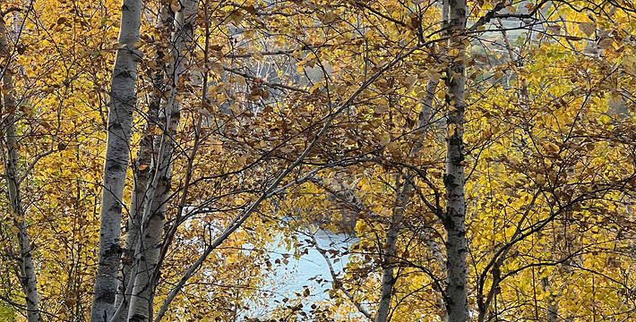 此处是游人休憩、乘凉、观景的绝佳场所,平台下面即为湿地白桦林,远望而去宛若一帏斑驳的大幕,华彩了这片山林与湿地。