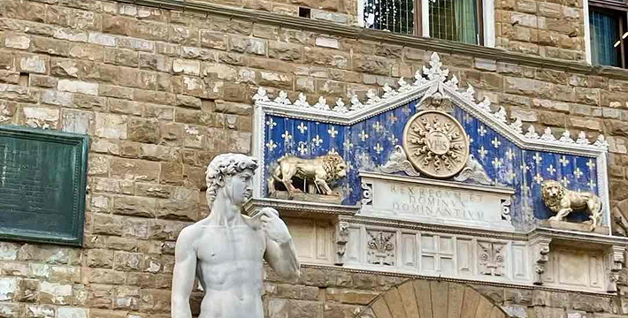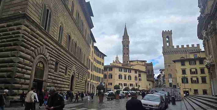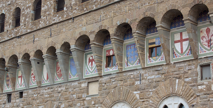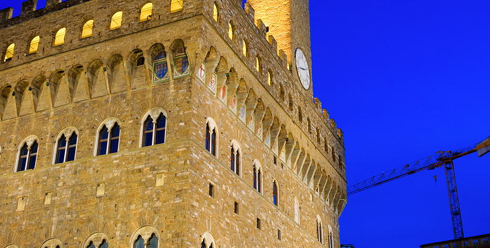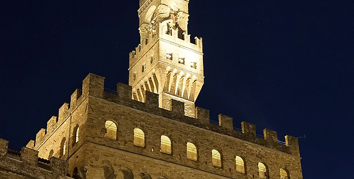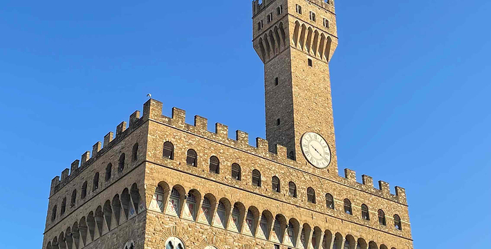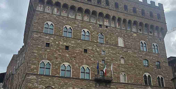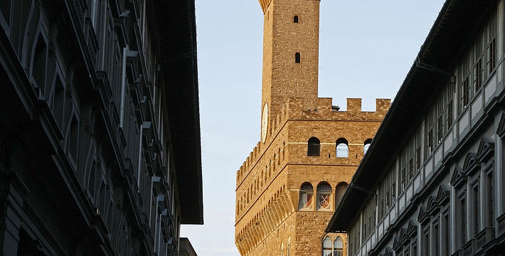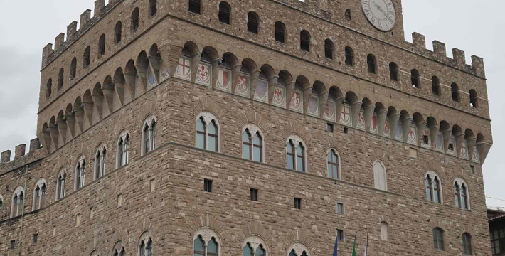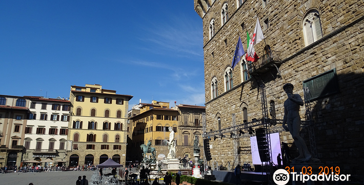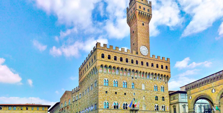 维奇奥宫,又称旧宫,位于市政广场,是过去佛罗伦萨共和国的市政厅,建筑入口处装饰着带有城市徽章,以及米开朗基罗著名的雕塑作品《大卫》的复制品。建筑内部二层的16世纪沙龙(Salone dei Cinquecento)曾经是佛罗伦萨共和国的会议室,用巴扎利派的绘画装饰着,三层的13世纪沙龙(Salone dei Duecento)里精致的穹顶画和织入了当时佛罗伦萨地图的壁毯(16世纪制)都很有艺术价值。爬山塔顶,整个佛罗伦萨的美丽景致尽收眼底。