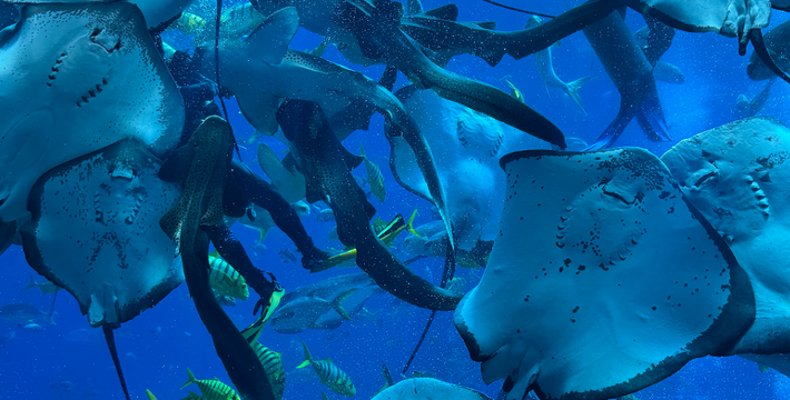 每位宾客都能在失落的空间水族馆开启一段探索之旅,沿着交错的迷宫隧道和主题鲜明的走廊,走近失落的乌托邦文明,探寻隐藏在海底千年的王国遗迹。这里陈列了30多个大小各异的展示池,也是86000尾海洋生物的家园,囊括逾280种淡水和海水生物。
