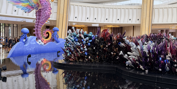 特色:"• 与86000多尾海洋生物近距离接触• 超过280种海洋生物• 16.5米长的观赏幕墙,厚达65厘米• 大使环礁湖容纳超过13500吨海水• 参加大使环礁湖中的潜水项目,与海洋生物互动• 专为来自极地的可爱白鲸而建造的冷水恒温展示缸• 神秘的亚特兰蒂斯遗迹水下景观"