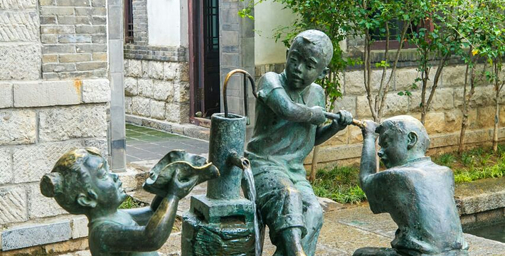 ·一边是青砖红瓦的老屋,一边是从容流过的清泉,临街人家在这里淘米、洗衣、使老街古旧中透出活力。