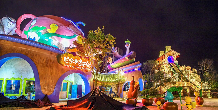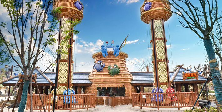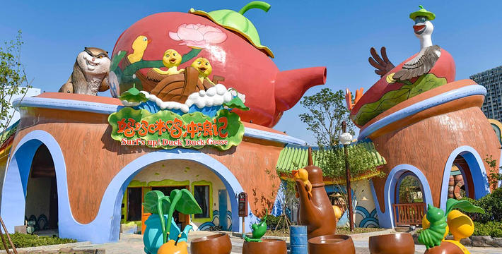 双提升激流勇进,世界首创“妈妈咪鸭”IP情景式激流勇进项目,让游客重温大雁带着两只小黄鸭摆脱坏猫的,历尽艰辛回到鸭妈妈身边的感人故事,项目首创两次提升的全新玩法,高达34米的落差,体验极速降落的刺激感受。