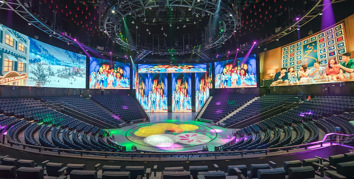 首创黑暗乘骑动感车结合真水体验的4D魔幻大秀,首创大型天幕观影黑暗乘骑,多样化的屏幕形式结合震撼的多媒体特效。项目以郑和下西洋故事为背景,利用不同幕型特点,巧妙地设计了多处宏大海景;综合演出节奏、影片、灯光、特技和机模等一系列要素,营造了一场身临其境的正邪海战。