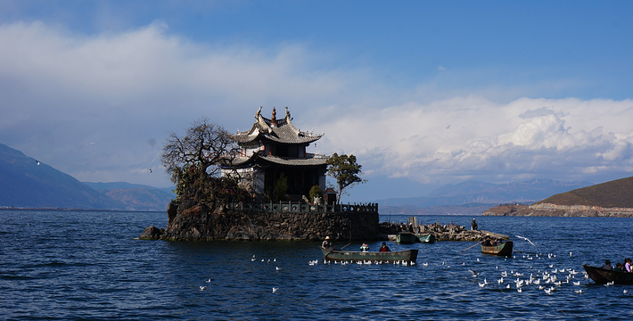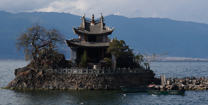 这时,海面上雾气袅袅,小普陀时隐时现,宛如月宫,待登上小普陀,只见四周雾气涌动,犹如洁白的轻纱。这就是洱海八景之一“岚霭普陀”。