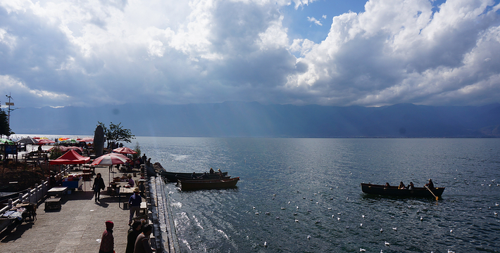 可先在大理下关北站乘车抵达挖色镇,然后到小普陀渡口乘船登岛。