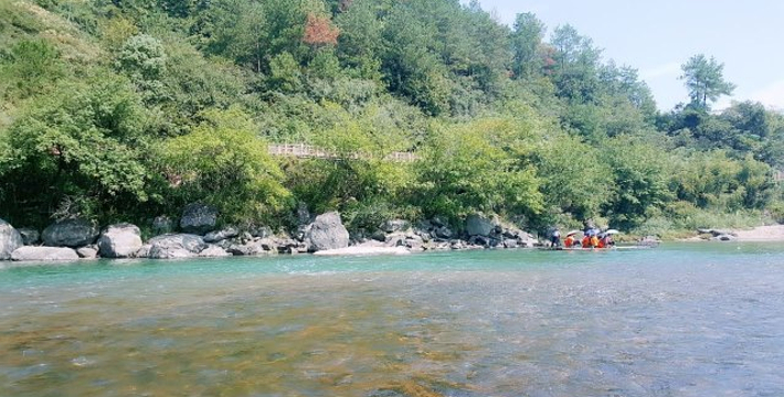 清清永安溪是仙居的母亲河,被专家喻为“幽谷溪流、清澈见底、终年不枯”,据水质专家分析可达国家一级饮用水标准。现开辟的永安溪漂流河段总行程7.68公里,以仙居土产的特制竹筏作为工具,“小小竹排溪中游,巍巍青山两岸走”。乘一叶竹筏顺流而下,或如履平地或急穿险滩,远离城市的繁华和喧嚣,碧水、蓝天、远山能让你品味到似水柔情般的逍遥温馨和两岸奇趣横生的田园景色。