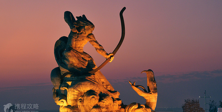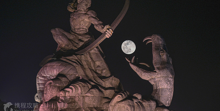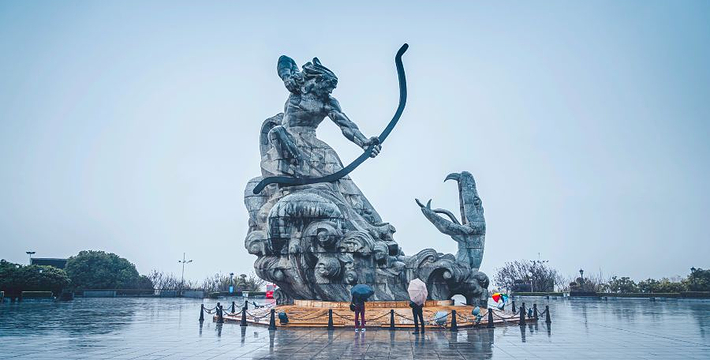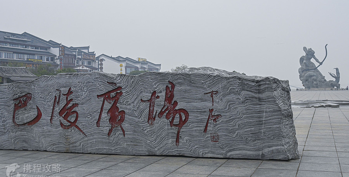 巴陵广场位于美丽的洞庭湖畔,附近就是岳阳美食街汴河街和岳阳楼公园,是岳阳热闹的场所。这个面积4万多平方米的广场明显的标志就是那座高达16米的“后羿射巴蛇”雕塑,取自山海经巴蛇食象的故事,相传后羿曾斩巴蛇于洞庭湖,积骨成丘陵乃有岳阳,用神话传说诠释了岳阳这座城市“巴陵”称呼的来源,也体现着“羿射巴蛇,万民乃安”的意思。整个广场气势恢宏,中央广场周边为疏林草地,广场基本对称,突出东西向的城市历史发展轴,站在滨湖景观区的台阶上可欣赏到洞庭湖美景。平台直通水面,大气壮观。沿湖用岩石连城围栏,上面刻写着许多文人墨客留下的诗句,耐人寻味。广场边还有瞻岳门、博物馆等城楼,可将广场、洞庭湖景色一览无余。
