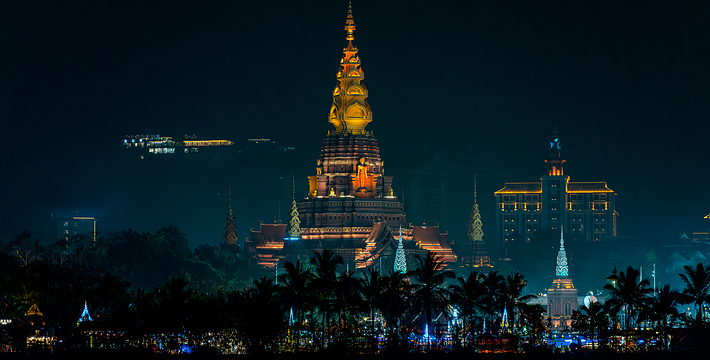 告庄西双景为傣语,汉语意为“九塔十二寨”。其中心的佛塔引人注目,一定要去观赏一番。