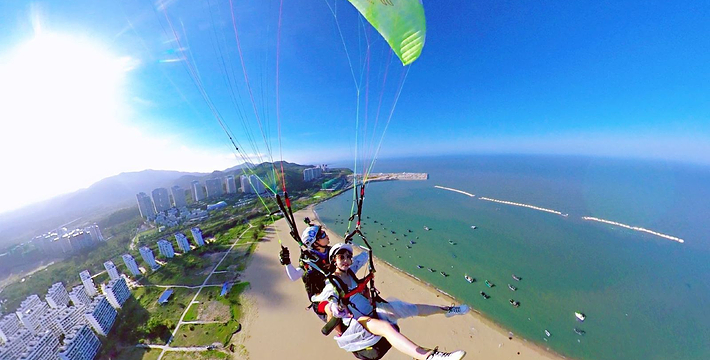 牵引式起飞,沙滩平地升空,免去您登山下山的繁琐、劳累,360°无死角欣赏龙栖湾沙海一线美景、西线最美落日晚霞。更可驾驶沙滩车追逐日落余晖,看渔船出海,体验乐东渔村风情。