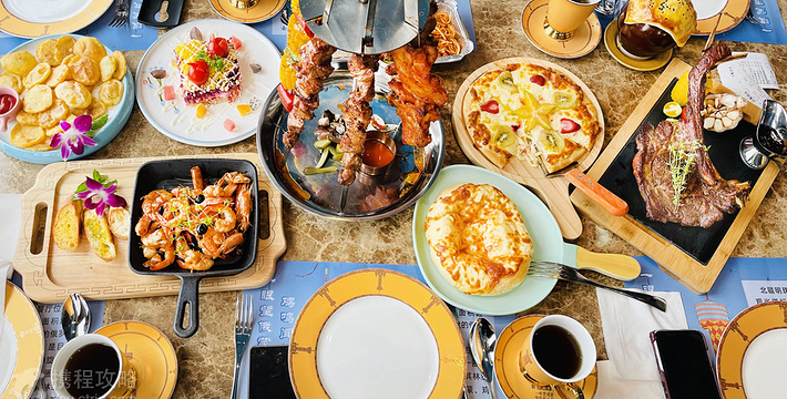 魅力边城旋转茶餐厅位于地面标高135米处,锦绣北疆旋转俄餐厅位于地面标高140米处(暂未营业),每30分钟旋转一圈的环游设置,让您一边品尝美食,一边“徜徉”于中俄之间。