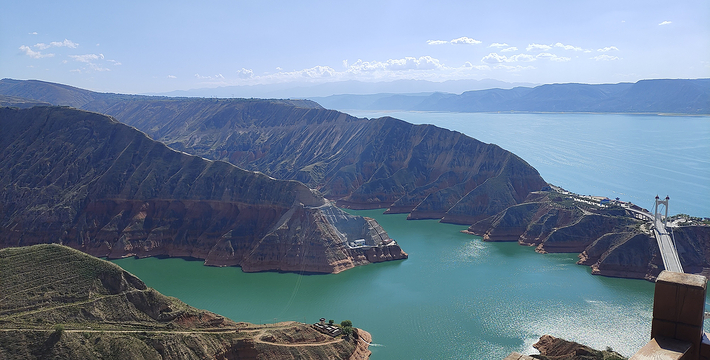 在兰州汽车西站乘坐兰州至刘家峡运营大巴车,到大坝游客中心站下车,行程约一小时半(票价25元/人,可刷码)。