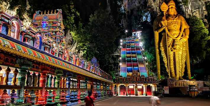 在吉隆坡市北郊13公里处,位于雪兰莪州境内;有一个神秘的钟乳石洞穴群-黑风洞(Bata Caves)。当车子驶近之时,在公路上即可见到眼前几座高耸屹立的悬崖陡壁,宛如一道天然的屏障,挡住了去路。由于崖岭属于石灰岩,林木比较稀落,反而使人感到它们的峥嵘和诡谲。