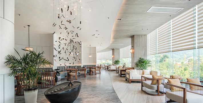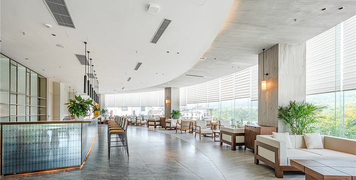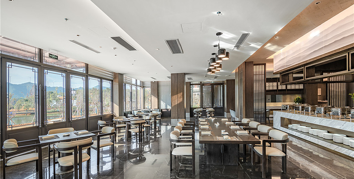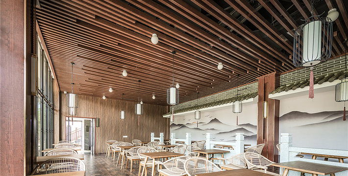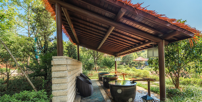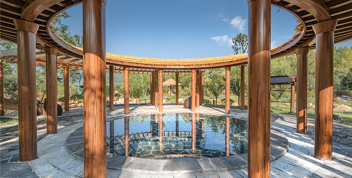 从长株潭出发,驱车两小时内即可抵达目的地。项目在整体规划上,以水为依托,客房依山势而建,围合成自然村落。这里十分适合散步,走在石块铺成的花间小路,松树、枫树、柳树,夹杂其中,犹如漫步在中式园林中。