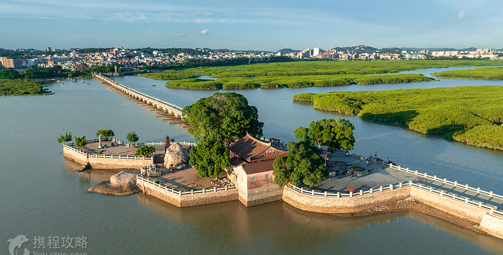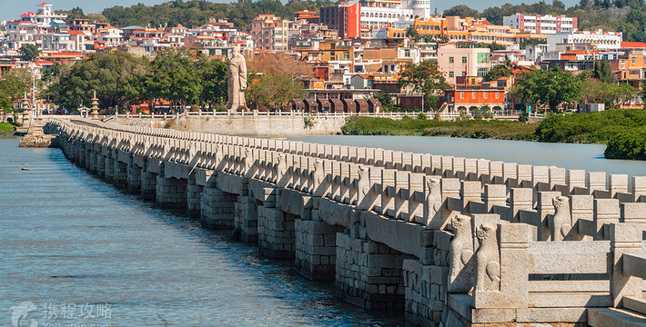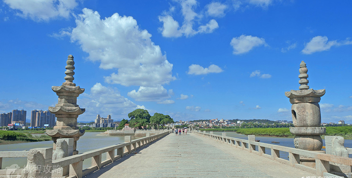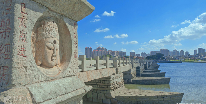 又称万安桥,处于泉州鲤城区与惠安县交界处,横跨洛阳江的入海口,是古代粤、闽北上京城的陆路交通孔道。北宋皇佑五年至嘉佑四年(1053—1056年),泉州郡守蔡襄主持兴建,并发明了“殖蛎固基”。游客可以参观“蔡襄祠”欣赏桥上石碑、石塔和石将军。该桥是举世闻名的梁式海港巨型石桥,为国家重点文物保护单位。洛阳桥原长1200米,阔5米许,桥墩46座、桥栏柱500根、石狮28只、石亭7座、石塔5座、规模宏伟、工艺卓越。