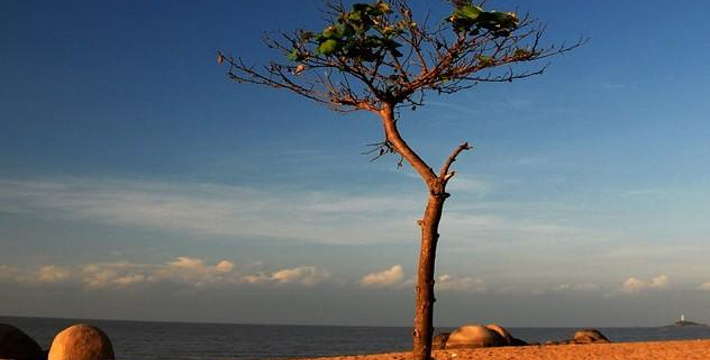 三娘湾的美不仅仅在于她动人的传说,而且在于她超凡脱俗的气质。黄金的沙滩柔软而亲切,婆娑的树林清丽恬静,清澈的柔波坚韧而执著,千姿百态的礁石巍然屹立,古朴的渔村温馨而恬谈,灵动的海豚亲切的呼唤,还有那悠闲从容的渔民……这一切让人坚信,这是世间不可多得的温馨,象童话般纯净,仿佛是天神低母拣尽人间的自然、坦荡、温馨的情愫铺就而成,钟灵毓秀,风物绝顶。静静的躺在三娘湾温馨的怀抱里,做作、压力、限制、束缚都荡然无存,唯有自然坦荡的心境。这是生命和爱情韵语的摇篮,是洗涤心灵纯洁的港湾。