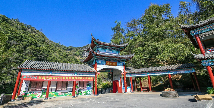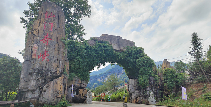 景区内最重要的地文景观是天然仙门,仙门链接峡谷的两边,中间为巨大的天坑高138米,内拱106米,宽53米,长156米,秀、奇、峻、美,令人称绝,因貌状神仙(仙人像)故也称为仙门,门后有十里峡谷,也称为仙人谷,生命之门,生态良好,景色迷人。它们的形成是由于河谷在这里形成一个曲流,随着地壳的抬升,山水从曲流中间穿过,不断冲刷石灰岩坡面,加上地下溶洞洞顶在重力作用下不断崩塌,最终形成了如此奇特的构造。