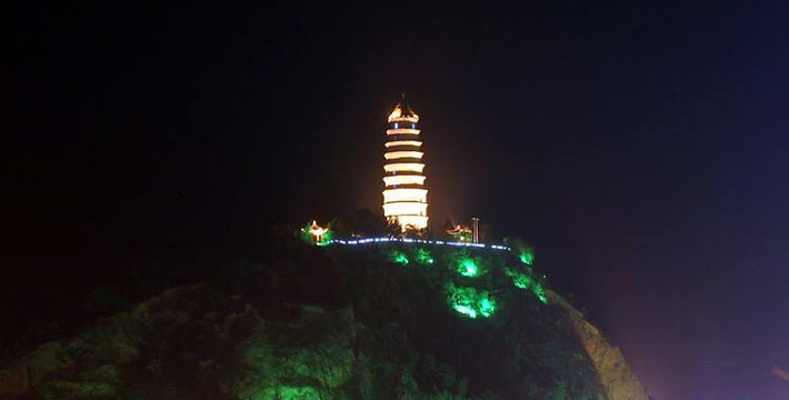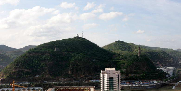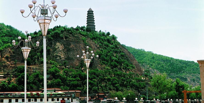 宝塔山古称嘉岭山,位于延安城东南,延河之滨。在山上可鸟瞰延安整个城区。因山上有塔,通常称作宝塔山。宝塔山是革命圣地延安的重要标志和象征。1953年版第二套人民币二元券正面图案为“延安宝塔山”。中华人民共和国1955年颁授的独立自由勋章,核心图案就是宝塔山和红五星。国家邮电局发行的纪念邮票中也屡屡出现宝塔山。“几回回梦里回延安,双手搂定宝塔山”,著名文学家贺敬之的名句热情的讴歌了宝塔山在中国人民心目中的神圣地位。宝塔山高1135.5米,山上宝塔,始建于唐,现为明代建筑。平面八角形,九层,高约44米,楼阁式砖塔,中共中央进驻延安后,这座古塔成为革命圣地的标志和象征。建国后。宝塔山上,历史文物和现代革命文物星罗棋布,交相辉映,满山绿树成荫,花草争艳。