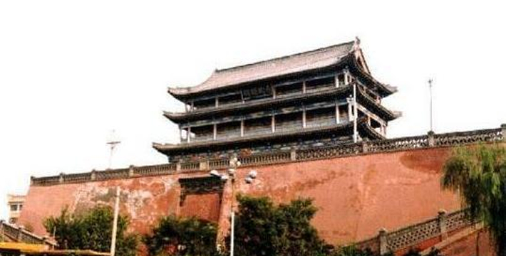 忻州城原有四门,城门上均有楼,始建于明万历二十四年(1596),由于历史的原因,仅有北城门楼幸存于今。城楼总高28米,宽七间,深四间,四周围廊重檐三滴水(明三层,暗三层),歇山式屋顶,楼内无柱,梁架结构简洁,连接严实,充分体现了古代劳动人民的聪明智慧。城楼阳面三层高悬一巨大匾额,上书“晋北锁钥”四个雄伟浑厚的大字。整个城楼,红柱蓝瓦,画栋雕梁,富丽堂皇,甚为壮观,具有很高的文物保护价值。