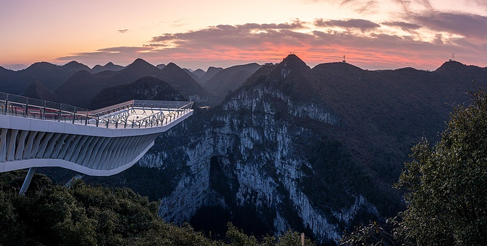 乐业天坑群在方圆不到20平方公里的崇山峻岭里,分布着24个天坑,目前已开发的有大石围天坑、白洞天坑、穿洞天坑等,其中大石围天坑为乐业天坑群中的代表,也是乐业人民的骄傲。 大石围天坑群形成于大约6500万年以前,是一块鲜为人知的秘境,集险、奇、峻、雄、秀、美于一体,是世界上罕见的旅游奇观。中国地质学会洞穴研究会会长朱学稳教经过全方位考察论证后称乐业县大石围天坑为“天坑博物馆”、“世界岩溶胜地”。站在大石围天坑的观景台,俯瞰天坑底部,阴天的时候雾气缭绕、时浓时淡、似梦如幻、恍如仙境,晴天的时候,地下原始森林郁郁葱葱、神秘莫测。远眺前方峭壁,不知是自然的巧合,还是天意的显灵,上面清晰地赫然显现着一幅倒着的“中国地图”,非常之逼真,令你不敢想象,就连海南岛、台湾岛都非常清晰,整个“中国地图”的总面积约9600平方米,堪称“中国地图”。