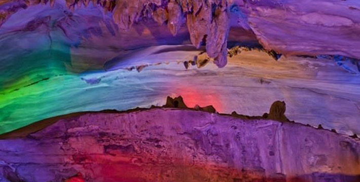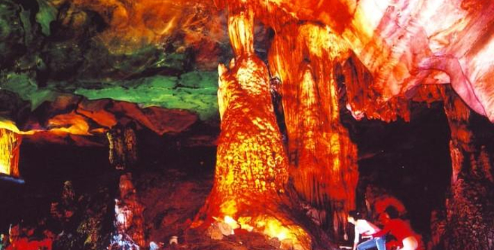 福建省龙岩市龙硿洞风景名胜区,地处武夷山脉南段,位于龙岩市新罗区境内,距龙岩市区48公里,距漳平市区26公里。是福建省省级风景名胜区。这里群山环抱,流水淙淙,景色秀丽,风物宜人,有着丰富的山林景观和复杂独特的喀斯特地貌。风景区面积10平方公里,其核心景点龙崆洞,形成于三亿年前的古生代,是海洋经三次地壳运动和间歇演变而成,为现已探明的我国特大溶洞之一。洞内空间宏敞,有8个大厅,16个支洞,二千余米游程,5.4万平方米,分上、中、下三层,层层叠叠,洞中有山,山中有洞,游于洞中,如身处迷宫。奇异绚丽的石钟乳、石笋、石柱等石灰石华物发育完整,石幔、石花、云盆比比皆是,更有不可多得的洞中暗河,时隐时现,时聚时散,为这座唐代已被发现的古洞增添了许多幽趣。洞口地处山坳,四周山石嶙峋,林木茂密,时至秋日枫林尽染,色可红天,十分壮观。有山涧从洞口潺潺流过,有“龙蛋”、“龙井”、“龙爪瀑”、“睡狮岩”、“万竹园”、“古树林”、“龙康村”等极具特色的旅游景观点缀,形成一个独特的原野型溶洞山林风景区。